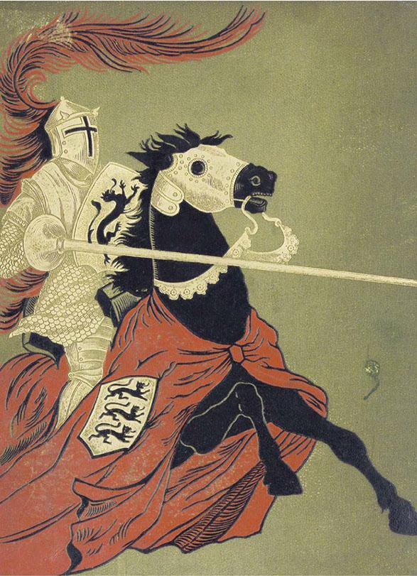 Когда Хэнка Моргана, нравственного и правильного героя романа «Янки из Коннектикута при дворе короля Артура», заносит на тринадцать столетий назад в Британию эпохи владычества этого легендарного короля, ему не остается ничего другого, кроме как пополнить ряды рыцарей, «одержимых поисками Святого Грааля» [18]. В сцене, отражающей его собственный сон, Твен напоминает читателям, что рыцари при всем блеске их лат и цветистости знамен отнюдь не были неуязвимыми и не могли передвигаться с такой легкостью, как это принято было изображать на популярных иллюстрациях (рис. 5). Скованный слоями металла Морган обливается по́том подобно любому, кого поместили бы на солнцепеке в кожух из теплопроводящего материала. Еще бо́льшую беспомощность твеновский потный рыцарь испытывает из-за неспособности запустить руку под свои доспехи, чтобы утереться, да при этом еще и сообразив, что платок для этой цели ему взять неоткуда. «Повесить бы того, кто выковал эти доспехи без единого кармана!» — в сердцах восклицает агонизирующий Морган [19].