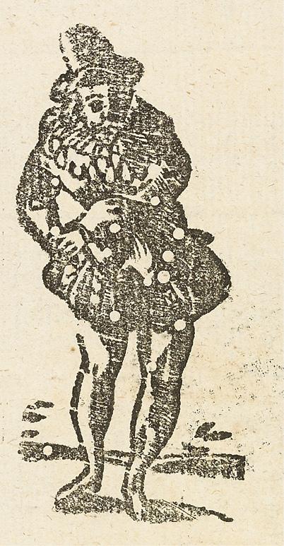 Рис. 13. «Пророчество пахаря» (1550-е). На ксилографической иллюстрации к балладе показано, как непросто мужчине запустить руку во встроенный «карман-сумку» бриджей