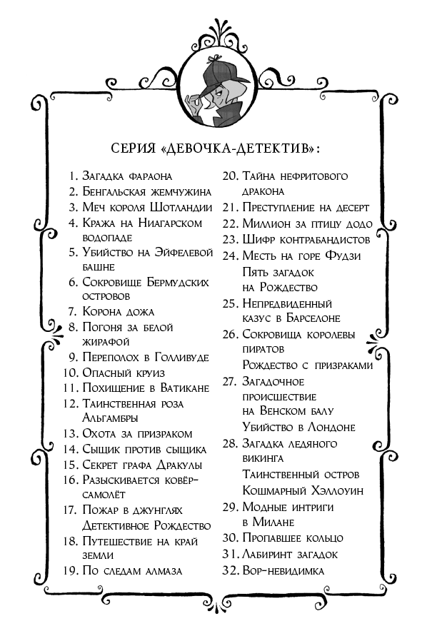 Наделённая потрясающим чутьём и феноменальной памятью, Агата Мистери мечтает стать писательницей. Но это в будущем, а пока она просто превосходная сыщица! Вместе со своим незадачливым братом Ларри, студентом детективной школы, она путешествует по миру, чтобы решать самые запутанные загадки. А помогают им преданный дворецкий, вредный сибирский кот и множество чудаковатых родственников.