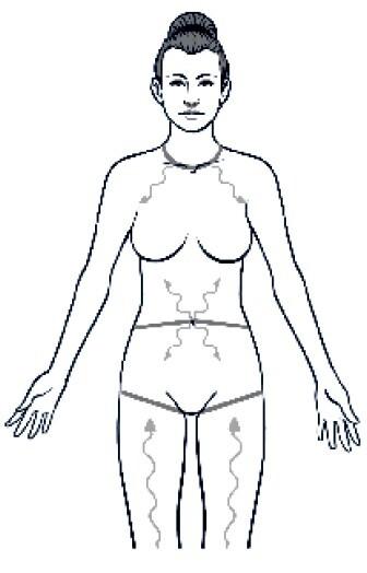 При выборе кинезиотейпа для эстетики тела нет особенных требований, как, например, для кинезиотейпа, предназначенного для работы с лицом. Выбирайте путем проб и обязательно перед использованием делайте аллергопробу, поскольку индивидуальные реакции организма никто не отменял. Как правильно делать аллергопробу, читайте в разделе «Метод кинезиотейпирования».