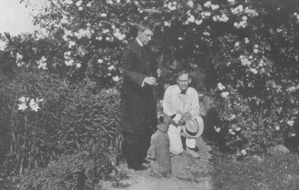 everything. He had just got the place, he said, into perfect order, and now all it wanted was to be left alone. It was a day of bright hot sunlight, and we lunched out of doors near the chapel under the shade of the yew trees. He produced a peculiar and pleasant wine, which he had made on the most scientific principles out of his own grapes. We went round and looked at everything, and he showed me the preparation for the last adornment, which was to be a rose garden near the chapel. We walked into the orchard and stood near the Calvary, little thinking that he would be laid to rest there hardly two months later.