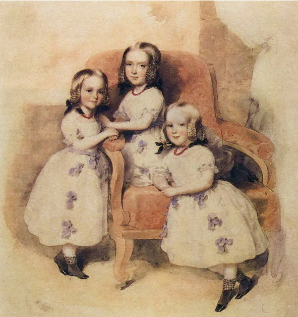 Акварель неизвестного художника. Дети Дантеса. Леония – слева. Личная коллекция автора. Источник: В. Вересаев. «Спутники Пушкина». М. Изд – во «Захаров» М. 2007 год