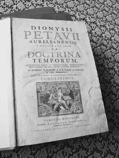 Рис. 0.1. Хронологический труд Дионисия Петавиуса в трех томах, переизданный в 1767 г. Он и произведения его предшественника, И. Скалигера, лежат в основе современной версии истории. Фотография сделана А. Т. Фоменко в 2005 г.
