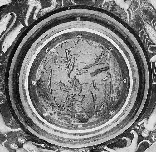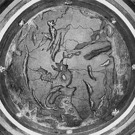 Рис. 1.4. Фрагмент предыдущего рисунка. Видно, что карта, изображенная на фреске, является очень грубой, примитивной. Это, по-видимому, говорит о древности росписи в этом месте сводов баптистерия. Взято из [86], с. 410, илл. 244