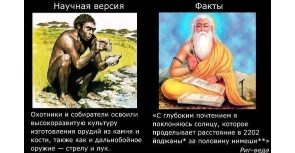 РигВеда рассказывает о том, как появился Млечный Путь, как рождались и исчезали различные галактики. Есть описание черных дыр, поедающих соседствующие звезды. Все это в иносказательной, мифической форме. Ну а как еще можно было донести до примитивных людей такие сложные для них знания?