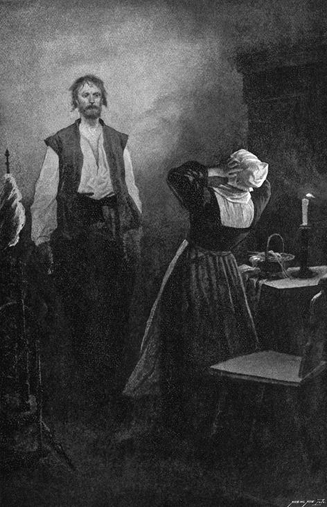 В кухне, которую мы описали выше, находились двое людей. Женщине, по всей видимости, совсем недавно перевалило за сорок, но тяготы и муки ее преждевременно состарили. Прежде она явно поражала красотой, о чем все еще можно было судить по правильным чертам лица, благородному челу и большим темным глазам, но в ее облике просматривались усталость и угнетенность, придававшие коже восковую прозрачность; лоб, когда она размышляла, бороздили глубокие морщины, точно у древней старухи, а лихорадочный блеск глаз поневоле заставлял порой усомниться в ее душевном здоровье. Чудилось, что внутри нее поселилась и не желает уходить некая безнадежная тоска, ни на мгновение не исчезавшая из памяти; пожалуй, от этого бремени страданий избавить могла только смерть. На женщине был вдовий наряд, принятый в ту пору, и эти одежды, чистые и опрятные, смотрелись ветхими от долгого ношения. Она сидела на кушетке, о которой уже говорилось, и никто бы не усомнился в том, что эта поза приносит ей облегчение в ее болезненном состоянии.