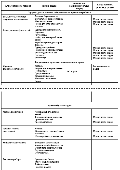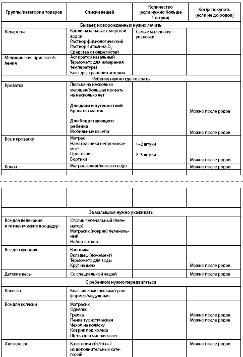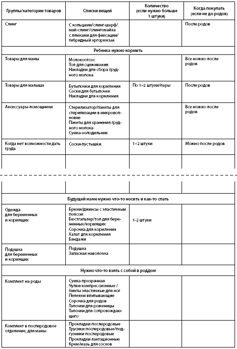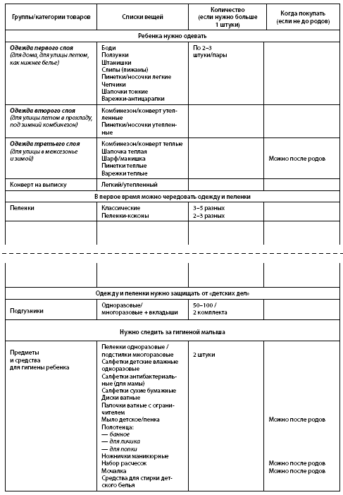 Многое из того, что вам понадобится, лучше купить до родов. Что-то пойдет в дело уже вот-вот, например одежда для беременных. Что-то нужно постирать и проветрить, например текстиль и матрас. Для товаров, с покупкой которых торопиться не стоит, есть пометка в четвертой колонке.