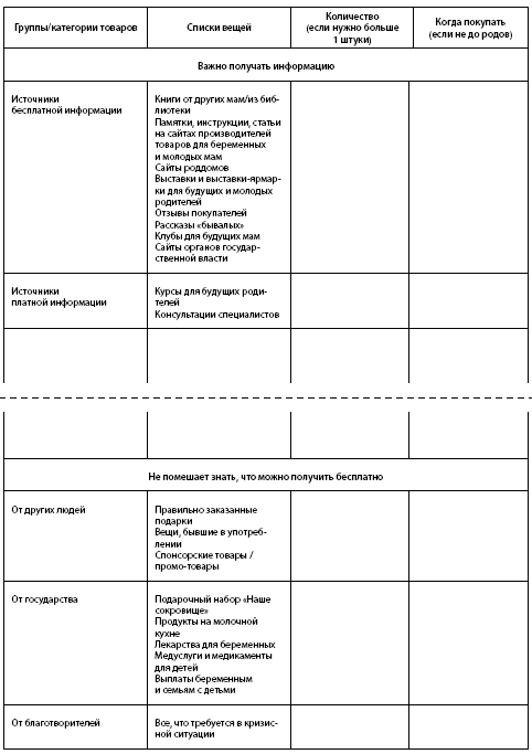 В таблице ниже – список товаров и услуг, о которых я рассказала в книге. Его я считаю максимально полным. Возможно, вам понадобится все; возможно, от чего-то вы решите отказаться.