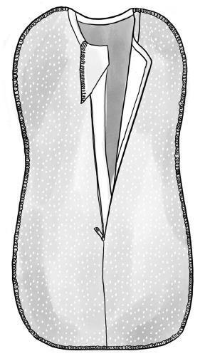 Как же выбрать? Не покупайте очень маленький кокон. Например, 22 × 50 см – это слишком. Даже если такая пеленка подойдет только что родившемуся малышу, уже через неделю-другую она станет мала. Хотя задача кокона – ограничивать движения, он не должен жать: ножки не должны упираться в шов, животик не должен быть обтянут. Но и слишком большой кокон покупать не стоит: он не будет достаточно «обнимать», и из кокона с большой горловиной ребенок сможет высунуть ручки. Хороший вариант для начала – размер 62, около 27 × 62 см.
