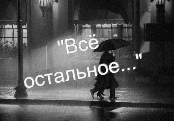 Всё тривиально… Моё «всё остальное» — имело для меня смысл три месяца назад. Когда в это понятие вмещались — поездки на дачу, прогулки под дождём, совместное засыпание и просыпание, генеральная уборка на двоих, походы по магазинам и выставкам, сплетни о сотрудниках, редкие обеды с его мамой и полуобморочное ощущение от счастья…