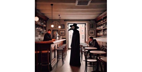Но тишина была обманчива. Алексей заметил, как рядом с ним появился человек в маске Доктора Чумы и в чёрной шляпе.