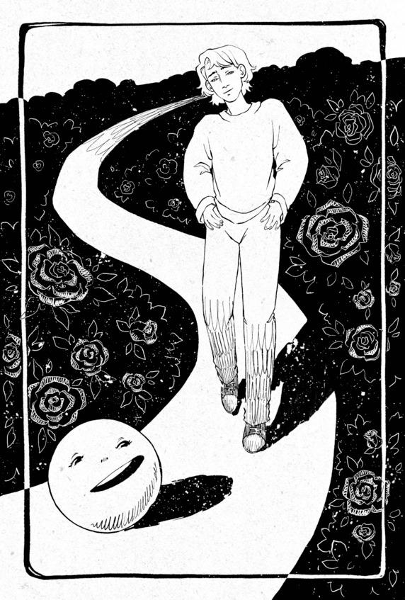 Когда впереди, на перекрёстке мраморных тропинок, показался бордюр, шарик помчался в его сторону так резво, будто с разбега взлетать собрался.