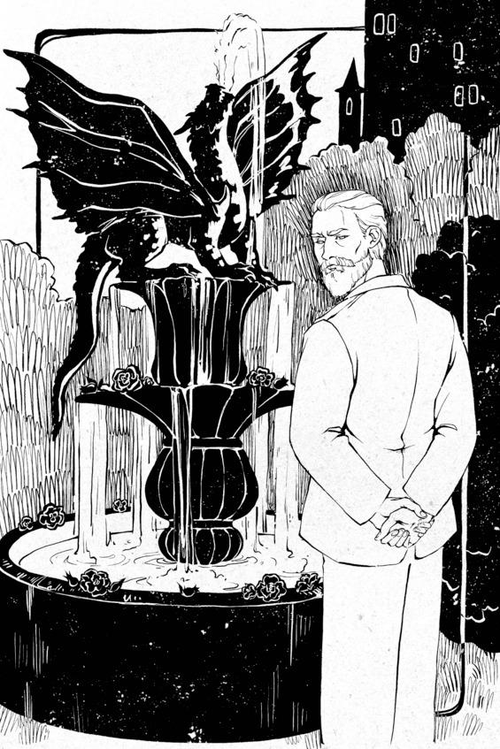 У фонтана, глядя на скульптуру, стоял невысокий человек. У него была гладкая кожа, но абсолютно седая борода. Как-то почувствовав меня, он обернулся. Его изучающий взгляд не был неприятным. Но мне почему-то было важно, что он обо мне подумает.