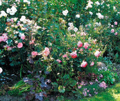 Если раньше в садах встречались в основном монорозарии, то теперь все чаще и чаще мы обращаемся к смешанным посадкам. Во-первых, этому благоприятствует появление зимостойких, устойчивых к вредителям и болезням сортов роз, которым требуется меньше ухода. Во-вторых, у многих наших садоводов участки маленькие, на них нелегко выделить отдельную зону только под розы. В-третьих, для нас стало важнее поддерживать декоративность сада в течение всего дачного периода, а с монопосадками этого добиться сложно, даже несмотря на то, что современные сорта роз цветут достаточно долго и обильно. И наконец, садоводы все большее значение придают гармоничному дизайну своего сада, а на ограниченной территории смешанные посадки смотрятся гораздо органичнее и естественнее.