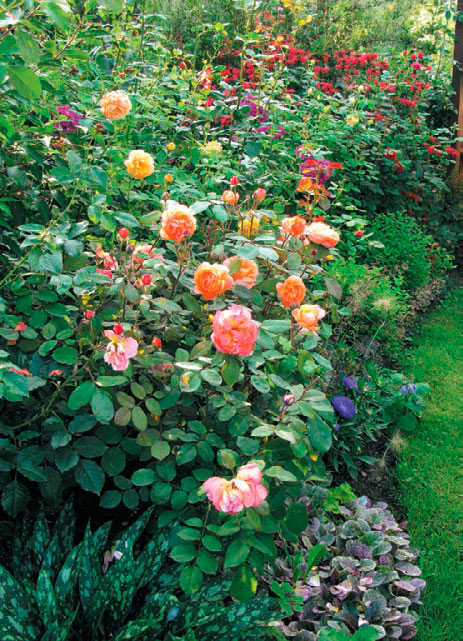 Есть одно существенное «но». Как вы понимаете, такой сад будет выглядеть очень парадно. Но прибавьте к этому еще и регулярную планировку – и вместо уютного дачного участка вы окажетесь в настоящем городском парке. Возможно, это даже неплохо, если участок достаточно велик и расположен перед большим красивым домом, довольный хозяин которого с гордым видом будет проводить для гостей экскурсии по своим владениям. Скажу по секрету: к такому саду обычно прилагается садовник. Поэтому вернемся с небес на землю, то есть к нашим скромным участкам. Пусть отсутствие садовника вас не расстраивает – вы можете попробовать оформить в классическом стиле не весь сад, а лишь самые значимые места. Например, можно разбить регулярный розарий перед входом в дом, или около террасы, или возле любого другого места отдыха – там, где вы проводите большую часть времени. Ведь розы созданы не для забытых и редко посещаемых уголков сада – они предназначены для того, чтобы мы имели возможность часто любоваться ими. Не сомневаюсь, это место станет визитной карточкой вашего сада.
