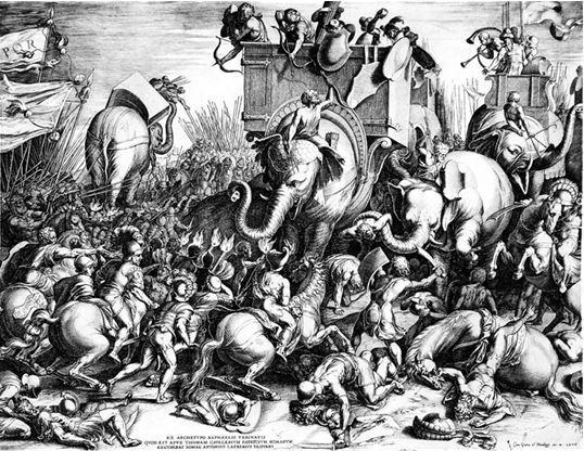 Пехота карфагенян была устроена по образцу фаланги. Кавалерия у них была несравненно лучше римской и состояла преимущественно из нумидийцев – легких всадников, подобных нашим казакам. Кроме того в карфагенских армиях мощную силу представляли собой вооруженные слоны.