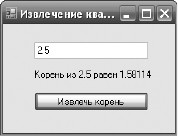 Таким образом, мы написали процедуру обработки события щелчка (Click) на кнопке button1. Теперь нажмем клавишу F5 и проверим работоспособность программы (рис. 1.6).