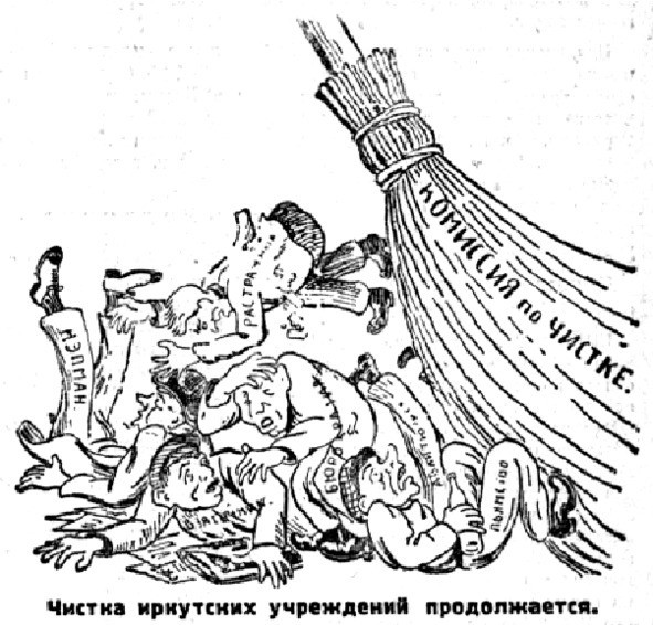 Сама чистка началась 18 октября и в течение двух недель «проверила состав сотрудников горкомхоза, ОМХ’а, Стройтреста, телеф. станции и конторы Сиблестреста (с конторами Ангарского и Иркутского заводов и иркутский лесозаготовительный участок). В обшей сложности через комиссию прошло 292 сотрудника. Из них постановлено уволить 76 человек, что составляет 26 проц. Если же к ним прибавить арестованных, которых комиссия постановила считать также уволенными, то процент уволенных по постановлению комиссии выразится в 30,8 проц.»21 Основную массу уволенных составляли так называемые «бывшие» люди. Подводя итог кампании, председатель комиссии Ремейко, перечислив наиболее одиозные фигуры (управделами – царский генерал, служивший у Колчака; завхоз – полковник; консультант – помощник прокурора при царе и Колчаке; зав. подотделом – чиновник особых поручений при губернаторе, редактор «Губернских Ведомостей»; инженер – прапорщик, служил при Колчаке; секретарь подотдела – генеральская дочка) подвел черту: «Спрашивается, может ли быть названо действительно советским, действительно рабоче-крестьянским учреждение с подобным вонючим букетом на ответственных должностях? Ведь тут прямо просится, вместо советской, другая вывеска: ну, скажем, колчаковская… классовая пролетарская власть не может терпеть во главе своих учреждений подобный царско-колчаковский сброд, притом в такой лошадиной дозе!»22. При этом комиссии неоднократно приходилось успокаивать общественность заявлениями о том, что это вовсе не чистка «специалистов».