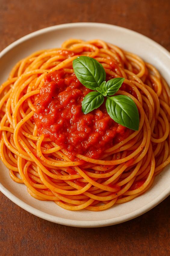 2. Спагетти с томатным соусом и базиликом