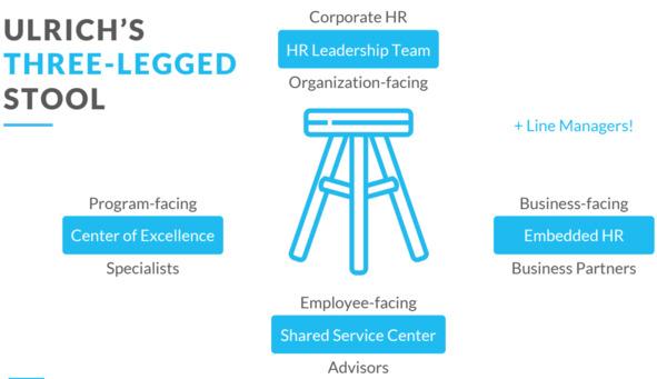 Чтобы объяснить роль HR BP во всей организации, мы должны обратиться к другой публикации Ульриха, в которой он представил модель «Трехногий табурет», которую также часто называют «моделью Ульриха».
