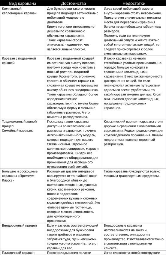 К специальным караванам относятся: внедорожные жилые прицепы, прицепы — палатки, спорт-караваны и стояночные караваны.