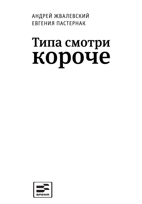 Типа смотри короче : рассказы /Андрей Валентинович Жвалевский, Евгения Борисовна Пастернак. — М. : Время, 2019. — 3-е изд. — (Время — юность!).