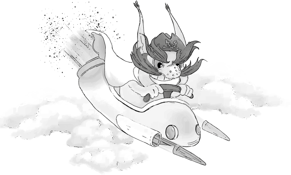 Но тут Рик услышал нарастающий гул двигателей. Из-за каменных глыб появилось пиратское судно. Оно летело прямо на них. Будто не видя ни Рика, ни Глюка, ни астероида и тоже совершая экстренную посадку.