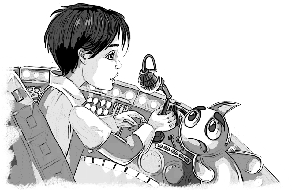 Замер корабль, замерли звёзды, которые только что с бешеной скоростью неслись через Вселенную, замерли датчики… Выключился свет. Капитанская рубка утонула в темноте. Рик видел только чёрный силуэт отца на фоне иллюминатора.