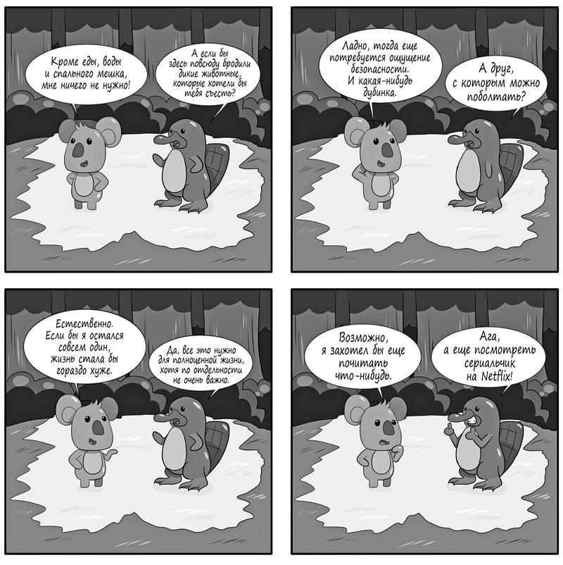 Почему это важно: у всех людей есть базовые потребности — в еде, воде, воздухе и жилье, — которые нужно удовлетворять, чтобы избежать страданий. Однако не стоит забывать и про эмоц