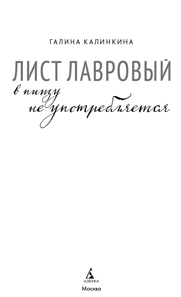 Лист лавровый в пищу не употребляется : роман / Галина Калинкина. — М. : Азбука, Азбука-Аттикус, 2025. — (Имена. Российская проза).