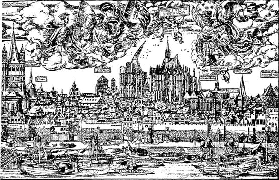 Для продолжения моего образования отец, когда мне было четырнадцать лет, послал меня в город Кельн, на Рейне, к своему старому другу Отфриду Герарду, думая, что мое прилежание возрастет от соревнования с товарищами. Однако университет этого города, откуда доминиканцы только что вели свою постыдную борьбу с Иоганном Рейхлином, не мог оживить во мне особое рвение к науке. В то время там хотя и начинались некоторые преобразования, но среди магистров почти вовсе не было последователей новых идей нашего времени, и факультет теологии все еще высился среди других, как башня над кровлями. Мне предлагали учить наизусть гекзаметры из «Doctrinale»[6] Александра и вникать в «Copulata»[7] Петра Испанского4. И если за годы моего пребывания в университете я научился чему-либо, то, конечно, не из школьных лекций, а только на уроках оборванных, странствующих преподавателей, которые появлялись порой и на улицах Кельна.
