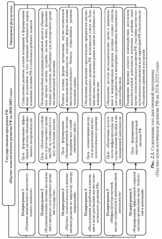 2. Изучите Государственную программу РФ «Научно-технологического развития РФ на 2018—2025 годы» в новой редакции. Внесите изменения в её содержательную часть, представленную в схематичном виде рис.2.3.