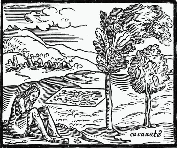 Вот как Бернардино Саагун описывал дерево какао в XVI веке во Флорентийском кодексе: «Дерево, на котором растет какао, называется какауакауитль, у него толстые ветви, широкие листья, оно среднего размера и образует крону. Плод, который оно дает, похож на маисовые початки, или немного крупнее, как молодой кукурузный початок. Он называется какауасинтли. У него внутри зерна какао, они как зерна маиса, снаружи фиолетовые, а во внутренней части ярко-красного или алого цвета, некоторые красноватые, некоторые белесоватые, некоторые голубоватые. Со временем его стали называть какао. Оно съедобно, его пьют».