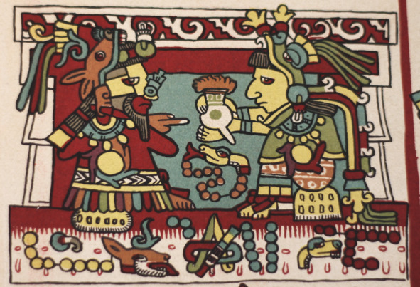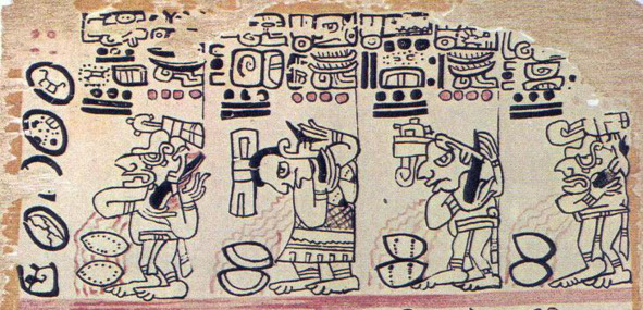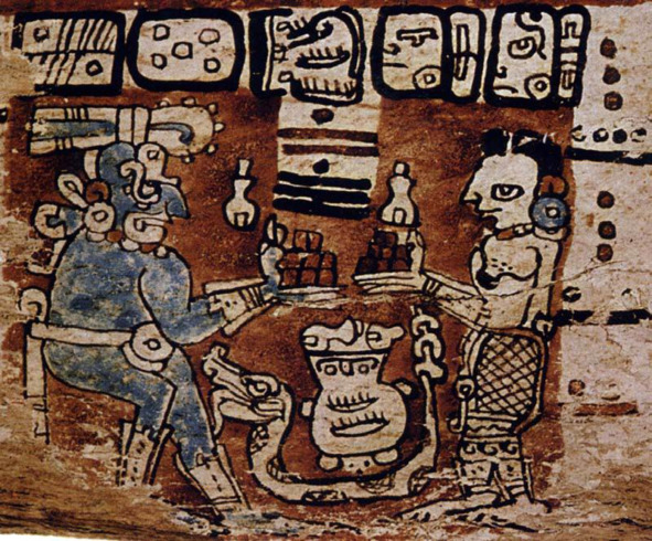 Миштекский кодекс XIV в. Зуш-Нэттол сохранил изображение, где госпожа Йасийо («13 Змея») предлагает господину Ийанакуаа Тейусиньянья («8 Олень») чашу с какао для освящения собственной свадебной церемонии. Кроме того, там же есть сцены, связанные с обручением, детскими ритуалами, похоронами и церемониями почитания предков, где присутствует коричневый пенистый какао-напиток. В Мадридском кодексе присутствует изображение свадьбы бога Чаака с богиней Ишик Кааб», где говорится о «передаче им какао». Сам этот термин символизировал свадьбу (в современном обществе схожую функцию выполняют деньги).