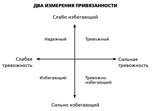 То есть в любой момент вашей жизни вы можете проявлять различные степени того или иного типа привязанности, и, хотя ваш основной уровень будет оставаться более или менее неизменным, вы можете изменить паттерн и научиться контролировать эмоции.