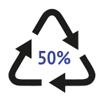 Такая же лента, но с числом процентов (например, 50%), означает, что в материале есть вторичное сырьё, а цифры указывают, в каком объёме. Это обозначение используют нечасто, но когда оно есть — это удобно. Регламент маркировки установлен Таможенным союзом в документе «О безопасности упаковки», но его выполнение не подлежит строгому контролю, поэтому придётся полагаться только на добросовестность производителя.