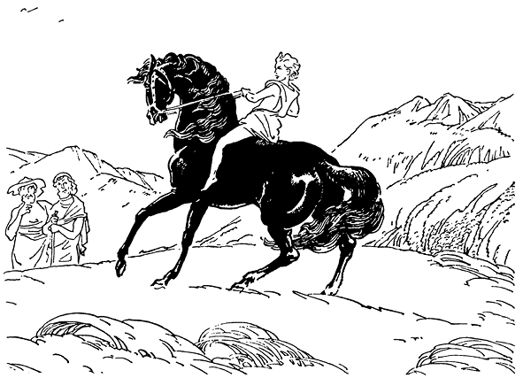Братья из Аргоса тем временем подошли к большой глубокой реке. Услышав погоню, они бросились в реку и переплыли ее. И, едва успев выйти на другой берег, они увидели всадников, которые гнались за ними. Всадники скакали, не щадя коней. Сейчас они будут у реки, переплывут ее, и бедным пастухам уже не спастись!