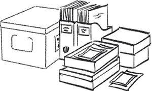 Конверты и папки с документами нужно поместить в коробки, сделанные из бескислотного картона или оклеенные изнутри бескислотной бумагой. Коробки нужно хранить подальше от домашних животных, батарей и других источников тепла, пыли, света и влажности