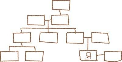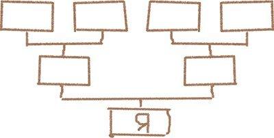 Ксюша прочитала, что лучше всего сразу строить генеалогическое дерево в компьютерной программе. Но чтобы видеть, кто кому кем приходится и ориентироваться в разговоре, во время беседы она будет рисовать схему с «кабинками», где представители одного поколения стоят на одном уровне. Под ними – дети, над ними – родители. Полная гармония. И очень наглядно.
