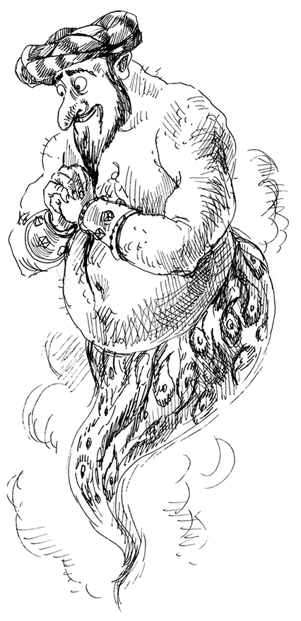 – Я все понял, – наконец, рыдая, проговорил он. – Ты решил бросить волшебство и стать врачом с румяными щеками. Но сначала хочешь уморить меня. Конечно, я тебе в тягость, я связал тебе руки. Лучший способ избавиться от старого, никому не нужного джинна – это сжечь его горчичниками, чтоб от него осталась только жалкая горстка пепла!