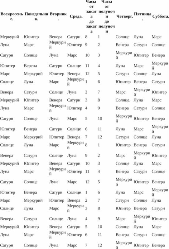 - О ДНЯХ, ЧАСАХ И ОСОБОЙ СИЛЕ ВЛИЯНИЯ ПЛАНЕТ