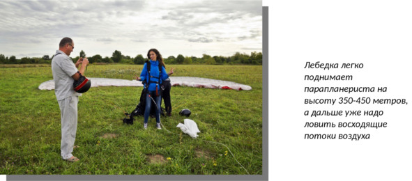 Есть еще паратрайк (условно говоря, летающая тележка), а также парасейлинг (когда парашют цепляется тросом за катер), но это уже совсем другое. Разберем вариант с лебедкой, для которого не нужны ни горы, ни мотор-пропеллер…
