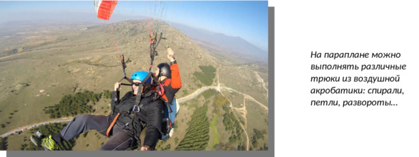 Самый простой вариант — полетать на параплане в тандеме с инструктором. Он пристегнет вас к себе в «связку» и будет контролировать все сам. Это не так интересно, как управлять крылом самостоятельно… Зато с инструктором первый полет продлится дольше — минут 15, высота будет больше — метров 300—400, а ощущения — более красочными.