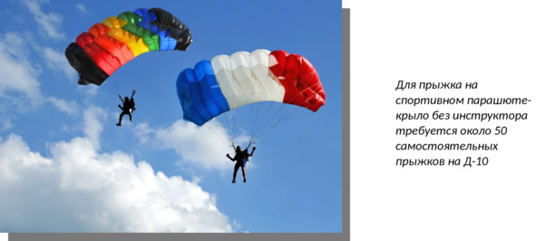 Если вы уже успешно совершили 5—10 таких полетов — вам разрешается отстегиваться в небе от лебедки и продолжать полет, свободно и плавно снижаясь. Когда вы научитесь ловить восходящие потоки воздуха и правильно управлять куполом, ваш полет может спокойно продолжаться 10, 20 или даже 40 минут.