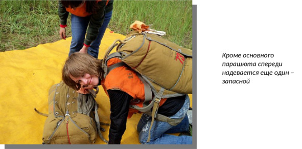 Вы приезжаете в широкое поле. Надеваете подвесную систему — в воздухе вы будете «сидеть» на ней, болтая ногами, как на качелях. От нее идут стропы к самому «крылу». Яркий цветастый купол раскладывают на траве за вашей спиной. Это выглядит так, будто вы — бабочка, а купол — ваши крылья. Спереди же вас пристегивают к длинной лебедке.