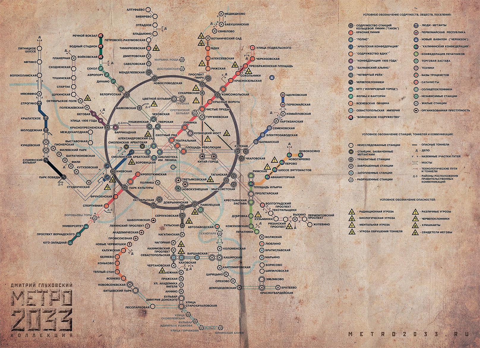 Бóльшую часть ближней половины занимал круглый обеденный стол. На нем была разложена карта Метро, громадная, склеенная из десятка полос комнатных обоев. Таких здоровых и подробных карт Анатолию прежде видеть не приходилось. Все привычные линии Метро были нарисованы черным пунктиром. И это было понятно. За годы, проведенные под землей, любой обитатель Метро мог назвать все станции и рассортировать их по линиям наизусть.