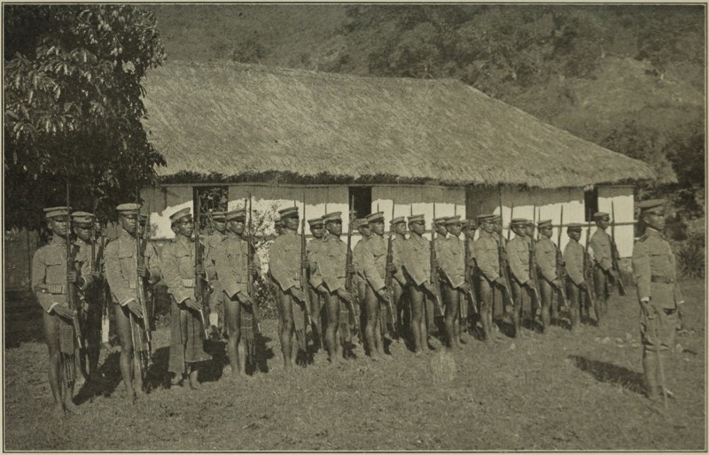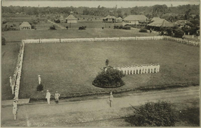 There were, too, several small companies of native constabulary, for these hill men make splendid soldiers and take great pride in their arms and uniform, and have proved loyal to the death. All the different tribes and the constabulary had turned out to receive the Secretary, and it was a vociferous and noisy yelling crowd that streamed about in irregular procession. We were, some of us, taken to a government house that was comfortable, and took our meals at a club which the officials have built and which is quite pathetically complete, and that evening we did little before turning in—the first evening since we had landed in the Islands when we were able to turn in at a reasonable hour with the prospect of sleeping as late as we pleased next day.
