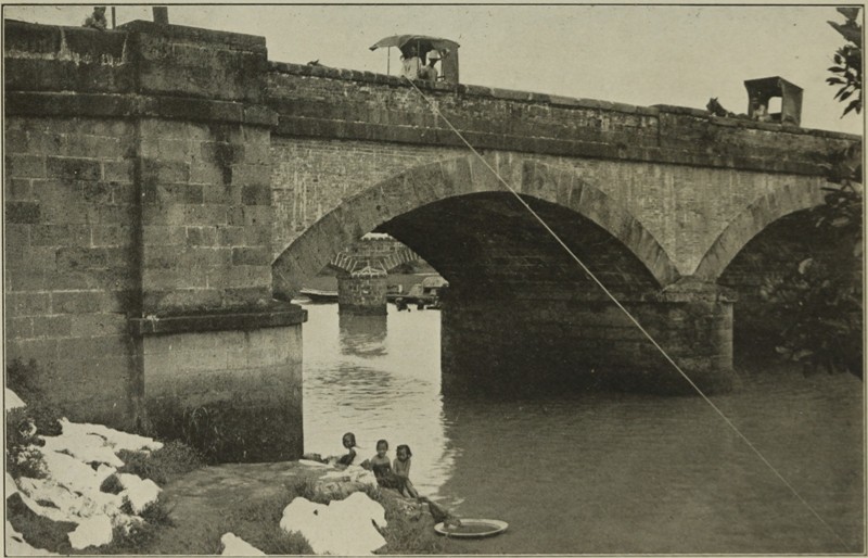 We landed at Cebu, which is the oldest town in the Islands, and passed down a street lined with ancient houses whose second stories arcaded the sidewalk. They were all in good condition, in spite of their age, for they were built of the wonderful hard woods that last forever. In fact, Cebu has the look of a new and prosperous place, for there have been fires which burnt up many of the ramshackle houses and gave a chance to widen the streets and replace the old structures with permanent looking buildings. The American government has done wonders in deepening the harbour and building a sea wall, behind which concrete warehouses are going up.