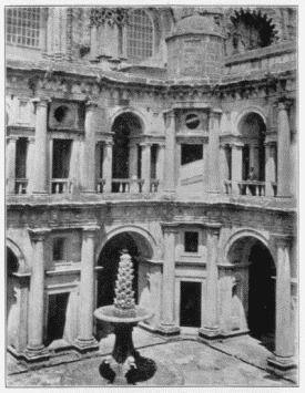 Diogo de Torralva and Claustro dos Filippes, Thomar—Miranda de Douro—Reigns of Dom Sebastião and of the Cardinal King Henry not noted for much building—Evora, Graça and University—Fatal expedition by Dom Sebastião to Morocco—His death and defeat—Feeble reign of his grand-uncle—Election of Philip—Union with Spain and consequent loss of trade—Lisbon, São Roque; coming of Terzi—Lisbon, São Vicente de Fora; first use of very long Doric pilasters—Santo Antão, Santa Maria do Desterro, and Torreão do Paço—Sé Nova, Coimbra, like Santo Antão—Oporto, Collegio Novo—Coimbra, Misericordia, Bishop's palace; Sacristy of Sé Velha, São Domingos, Carmo, Graça, São Bento by Alvares—Lisbon, São Bento—Oporto, São Bento