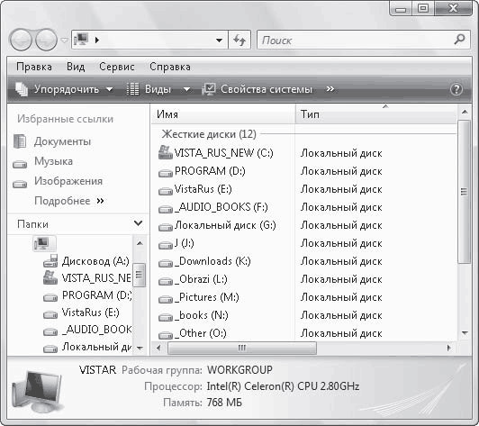 Рис. 2.8. Окно Проводника без меню Файл